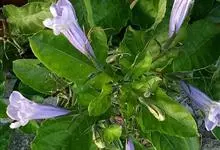 洋金花是茄科曼陀罗属植物,一年生草本植物,全株近于无毛。茎直立,圆柱形,高30~100cm,基部木质化,上部呈义状分枝。叶互生,上部的叶近于对生;叶柄长2~6cm,表面被疏短毛;叶片卵形、长卵形或心形,…全部>>