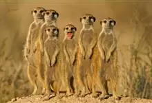 狐獴,是食肉目獴科狐獴属小型哺乳动物。狐獴的眼睛周围有黑色块,新月型的耳朵,修长的躯干和四肢,有着有力、弯曲的爪子,尾巴长细并尖尖延伸到端点,在末端的端点都为黑色。直立时狐獴会用尾巴支撑来保持平衡。…全部>>