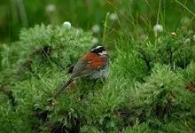 藏鹀:属小型鸣禽。喙为圆锥形,与雀科的鸟类相比较为细弱,上下喙边缘不紧密切合而微向内弯,因而切合线中略有缝隙;体羽似麻雀,此鹀以具有特殊的鲜红栗色背部,及上胸的黑带与下胸的纯灰色等形态特征,…全部>>