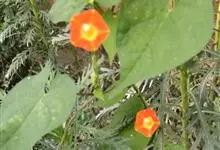 橙红茑萝是旋花科虎掌藤属的一年生草本,又称圆叶茑萝,茎缠绕,平滑,无毛;叶心形,骤尖,全缘,或边缘为多角形,或有时多角状深裂,叶脉掌状;叶柄细弱,几与叶片等长;聚伞花序腋生,总花梗细弱,较叶柄长,…全部>>