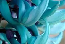 翡翠葛是豆科翡翠葛属植物,多年生常绿大型藤本,茎木质,直径可达30厘米,长可达21.3米。三出复叶,革质光亮,小叶长椭圆形,长7.6-12.7厘米,中间小叶最长。花两性,春季至初夏开花,蓝绿色,…全部>>