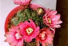 绯花玉 Speg.)是仙人掌科、裸萼球属多肉植物,植株呈扁球形,表皮墨绿色,刺针状,每个刺座有5枚灰色周刺,花生于球体顶端,夏季开花,花色有白、粉红、深红等。果实纺锤形,深灰绿色,种子黑色。…全部>>