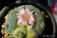 乌羽玉 Coult)是仙人掌科乌羽玉属的多年生肉质植物。老株丛生,萝卜状肉质根,球体偏球形,表皮暗绿色或灰绿色,株高5-8cm,棱垂直或呈螺旋状排列,顶部多绒毛,小花钟状或漏斗形,淡粉色至紫红色,…全部>>