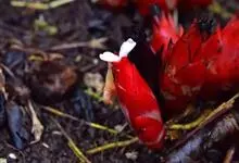 蘘荷 Roscoe)是姜科,姜属多年生草本植物,株高可达1.5米;根茎白色,微有芳香味。叶片披针形或椭圆状披针形,叶背被极疏柔毛至无毛;叶舌,膜质,总花梗长,花序近卵形,苞片红色,宽卵形或椭圆形,…全部>>