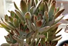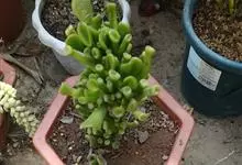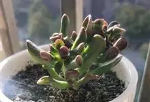 筒叶花月,是景天科青锁龙属的多年生草本植物。植株多分株,灌木状,茎较粗壮,圆柱形,表皮灰褐色;叶片肉质,互生,呈圆筒状,簇生于茎或分枝顶端,叶端呈斜截形,截面为椭圆形;花呈星状,淡白色;花期秋季。…全部>>