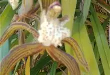 虎头兰是兰科兰属附生植物。假鳞茎窄椭圆形或窄卵形;叶呈带形;花葶长45-60厘米,苞片卵状三角形,花有香气,萼片与花瓣绿或黄绿色,基部疏生深红色斑点或偶有淡红褐色晕,唇瓣白色或奶油黄色,…全部>>