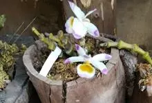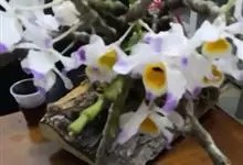 肿节石斛,是兰科石斛属多年生草本植物。肿节石斛茎斜立或下垂,肉质,圆柱形;叶纸质,长圆形;花序生于已落叶老茎上部,花白色,上部紫红色,有香气;花瓣宽长圆形,唇瓣白色,中部以下金黄色,上部紫红色,…全部>>
