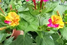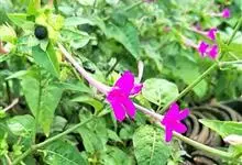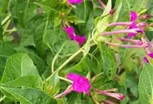 即紫茉莉,英文名:Four-o'clock,Marvel of Peru,为紫茉莉科、紫茉莉属多年生草本植物,一年生栽培。株高50~80cm。根粗壮,茎多分枝而散生。叶对生,卵形或心脏形。花数朵簇生…全部>>