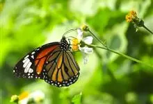 黑脉金斑蝶:翅阔8.6-12.4厘米。雄蝶较雌蝶为大。成年蝶颜色鲜艳,翅膀上有显眼的橙色及黑色斑纹,周围是宽阔的黑色边框,布有许多白色斑点。这种引人注目的着色是对捕食者的视觉警告,表示这个物种有毒;…全部>>