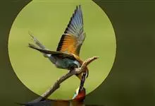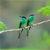 栗喉蜂虎是蜂虎科蜂虎属的鸟类。有热带鸟类羽毛艳丽的特征:喉部是栗红色的,黑色的过眼纹,翅膀和背部是绿色的,尾翼是蓝色的,飞行时翅膀下面的羽毛是橙黄色的,在阳光的照射下,它们全身闪烁着金属般的艳丽光泽,…全部>>