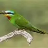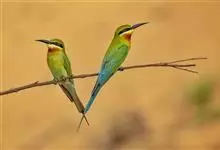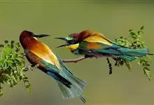 蓝颊蜂虎:是蜂虎科、蜂虎属的鸟类,共有2个亚种。体长27-33厘米,翼展46-49厘米,体重38-50克。嘴形细长而下弯,先端尖,…全部>>