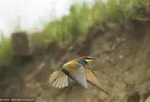 栗喉蜂虎是蜂虎科蜂虎属的鸟类。有热带鸟类羽毛艳丽的特征:喉部是栗红色的,黑色的过眼纹,翅膀和背部是绿色的,尾翼是蓝色的,飞行时翅膀下面的羽毛是橙黄色的,在阳光的照射下,它们全身闪烁着金属般的艳丽光泽,…全部>>
