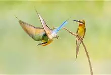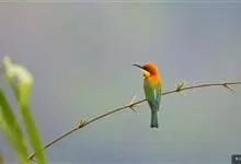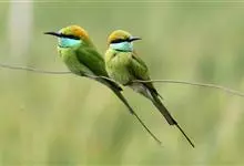 绿喉蜂虎是佛法僧目、蜂虎科的小型鸟类,共有9个亚种。身长22-25厘米,翼展29-30厘米,体重15-20克。喉绿色,额部、头顶至上背为锈红色,其余上体均为亮绿色。中央尾羽延长且端段狭细,…全部>>
