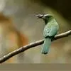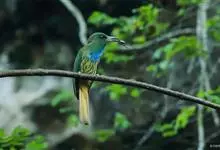 蓝须夜蜂虎是佛法僧目、蜂虎科的鸟类,体长约30厘米,是绿色林栖型蜂虎,蓝色的胸羽蓬松,嘴厚重而下弯。成鸟顶冠淡蓝,腹部棕黄带绿色纵纹。尾羽腹面黄褐。亚成鸟全身绿色。喉、胸部中央的羽甚长和亮色;该物种…全部>>