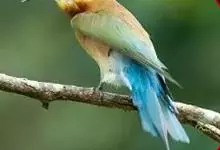 蓝颊蜂虎:是蜂虎科、蜂虎属的鸟类,共有2个亚种。体长27-33厘米,翼展46-49厘米,体重38-50克。嘴形细长而下弯,先端尖,…全部>>