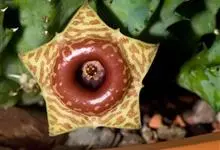 巨花犀角又称大豹皮花,是夹竹桃科犀角属的一种植物。茎粗,花大,边缘生长细毛。植株柱形多分枝呈丛生,柱形具4棱,棱缘具细小疣突。花大,五角星形黄色,并有横向棕褐色斑纹,似豹皮而得名。花期夏秋两季。…全部>>
