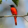 灰喉山椒鸟:共有8个亚种。体长18-22厘米。雄鸟头部和背亮黑色,腰、尾上覆羽和下体朱红色,翅黑色具一大一小的两道朱红色翼斑。中央尾羽黑色,外侧尾羽基部黑色,端部红色。…全部>>