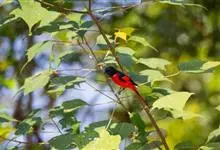 灰喉山椒鸟:共有8个亚种。体长18-22厘米。雄鸟头部和背亮黑色,腰、尾上覆羽和下体朱红色,翅黑色具一大一小的两道朱红色翼斑。中央尾羽黑色,外侧尾羽基部黑色,端部红色。…全部>>