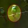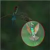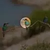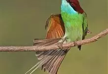 栗喉蜂虎是蜂虎科蜂虎属的鸟类。有热带鸟类羽毛艳丽的特征:喉部是栗红色的,黑色的过眼纹,翅膀和背部是绿色的,尾翼是蓝色的,飞行时翅膀下面的羽毛是橙黄色的,在阳光的照射下,它们全身闪烁着金属般的艳丽光泽,…全部>>