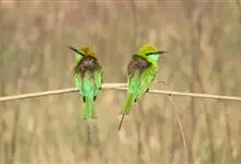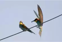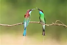 蓝颊蜂虎:是蜂虎科、蜂虎属的鸟类,共有2个亚种。体长27-33厘米,翼展46-49厘米,体重38-50克。嘴形细长而下弯,先端尖,…全部>>