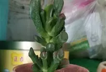 筒叶花月,是景天科青锁龙属的多年生草本植物。植株多分株,灌木状,茎较粗壮,圆柱形,表皮灰褐色;叶片肉质,互生,呈圆筒状,簇生于茎或分枝顶端,叶端呈斜截形,截面为椭圆形;花呈星状,淡白色;花期秋季。…全部>>