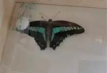 青带凤蝶Graphium sarpedon ,又名青凤蝶,是最普遍的中型凤蝶,飞行速度很快。青带凤蝶的翅膀中央有许多浅蓝色的斑点,很整齐地排列成一条直线。这些斑点由上而下逐渐变大,就像一条青色的带子。全部>>