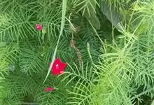 茑萝是旋花科番薯属属一年生柔弱缠绕草本植物。叶卵形或长圆形,羽状深裂至中脉,基部常具假托叶;花序腋生,由少数花组成聚伞花序,花直立,花柄较花萼长,在果时增厚成棒状;萼片绿色,椭圆形至长圆状匙形,…全部>>
