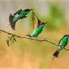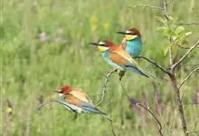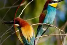 蓝颊蜂虎:是蜂虎科、蜂虎属的鸟类,共有2个亚种。体长27-33厘米,翼展46-49厘米,体重38-50克。嘴形细长而下弯,先端尖,…全部>>