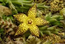 豹皮花 L.C.Leach)是马利筋亚科豹皮花属植物。肉质植物,茎亮绿色,几株簇生在一起,高约10厘米,状似仙人掌,四棱,棱稍钝,棱具粗厚软刺,光滑,绿色。无叶。…全部>>