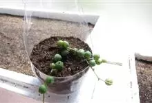 珍珠吊兰因鼓鼓、饱满翠绿的椭圆形小叶子形似珍珠状而得名。又名翡翠珠、 佛珠吊兰、翡翠珠、绿之铃,绿铃。菊科千里光属多肉植物,花期一般是当年的12月至翌年1月。珍珠吊兰性喜富含有机质的、疏松肥沃的土壤。…全部>>