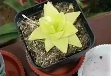 京之华锦是独尾草科瓦苇属的一种植物。也叫凝脂菊,为京之华的斑锦变异品种,植株群生,扁棒状三角形肉质叶排成莲座状,叶表平展,背部隆起,全叶有黄色或白色纵向缟纹,少数叶整片都呈黄色或白色。株型小巧,…全部>>