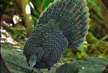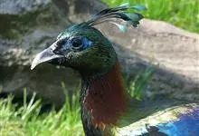 灰孔雀雉:雄鸟体长50-67厘米,体重456-710克;雌鸟体长33-52厘米,体重460-500克。雄鸟全身羽毛黑褐色,…全部>>