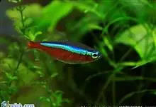 霓虹灯鱼又被称为红绿灯鱼、红莲灯鱼。鱼纲,脂鲤科。原产亚马孙河上游。体长3~4厘米,体形较细,色泽美丽,体上部的绿线,因光线角度不同,有时显出蓝色,与体下部的红线极为协调,又与腹部全红的新红绿灯鱼〔…全部>>