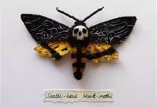 鬼脸天蛾,是鳞翅目天蛾科面形天蛾属动物。成虫翅展100~125毫米,体黑褐色;胸背有骷髅形斑纹;卵圆球形,直径约2毫米,淡黄绿色,表面光滑;老熟幼虫体长70~90毫米,蛹体长约56毫米;前翅为褐色,…全部>>