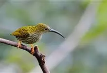 纹背捕蛛鸟:为太阳鸟科捕蛛鸟属的鸟类。是太阳鸟科中体型较大的一种,体重25-45克,体长160-210毫米。嘴粗长而尖且向下弯曲。上体橄榄黄色具黑色中央斑纹。下体淡黄白色满布黑色纵纹,尾具黑色次端斑。…全部>>