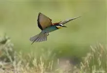 蓝颊蜂虎:是蜂虎科、蜂虎属的鸟类,共有2个亚种。体长27-33厘米,翼展46-49厘米,体重38-50克。嘴形细长而下弯,先端尖,…全部>>