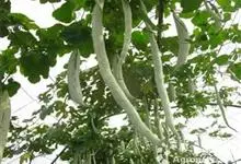 蛇瓜是葫芦科栝楼属的一年生攀援藤本植物。别名蛇豆。茎被柔毛及疏长柔毛状硬毛;叶圆形或肾状圆形,先端圆钝或宽三角形,叶基弯缺深心形;花雌雄同株,苞片钻状披针形,萼筒密被毛,裂片呈窄三角形,花冠白色,…全部>>