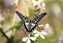 柑橘凤蝶是鳞翅目凤蝶科凤蝶属昆虫,又称柑橘黄凤蝶、花椒凤蝶、燕凤蝶。中型凤蝶。翅底色黑褐色,翅脉黑色,各翅室内具长短不一的黄白色斑;前翅中室具4条近乎平行的黄色线纹,后翅臀区具一枚橘红色的圆斑,…全部>>