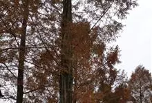 落羽杉 Rich.),杉科落羽杉属木本植物。树干尖削度大,基部通常膨大,具膝状呼吸根,树皮棕色,裂成长条片;一年生小枝褐色,侧生短枝;叶线形;球果具短柄,熟时淡褐黄色,被白粉;花期3月;球果10月成熟。…全部>>