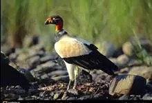 王鹫:是美洲鹫科、王鹫属大型食腐鸟类。体型很大,体长约78厘米。头部裸露,色彩极鲜艳醒目。嗉囊发达。尾短。它的头部及颈部没有羽毛,皮肤颜色有异,包括黄色、橙色、蓝色、紫色及红色。…全部>>