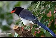 红嘴蓝鹊(赤尾山鸦、长尾山鹊)鸣禽亚目 > 鸦科 > 蓝鹊属 > 红嘴蓝鹊