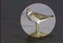 红脚鹬:体长28厘米,上体褐灰,下体白色,胸具褐色纵纹。飞行时腰部白色明显,次级飞羽具明显白色外缘。尾上具黑白色细斑。虹膜黑褐色,嘴长直而尖,基部橙红色,尖端黑褐色。脚较细长,亮橙红色,…全部>>