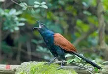褐翅鸦鹃,是鹃形目鸦鹃科鸦鹃属的鸟类。褐翅鸦鹃的身体为黑色;头颈和胸带蓝紫色金属光泽并具黑亮的羽干纹,下胸至腹部泛金属绿光泽;两翼和肩部为棕栗色,外侧飞羽具暗色羽端,尾羽闪铜绿色光泽;虹膜赤红色,…全部>>