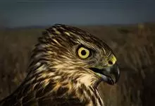 褐耳鹰的体形比苍鹰要小得多,为小型猛禽,体长为31-44厘米,体重217-325克。上体灰色,下体具赤褐色横斑。第6枚初级飞羽外羽片无缺刻,次外侧的4对尾羽具5道黑褐色横斑。眼先具白色短羽。…全部>>