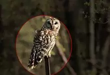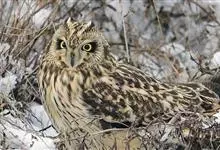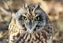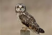 短耳鸮又名小耳木兔、田猫王、夜猫子等,是鸮形目鸱鸮科耳鸮属中小型猛禽动物。成鸟面盘显著,眼周黑色;眼先及内侧眉纹灰白色,面盘余部棕黄色杂以黑色细羽干纹;耳簇羽短小而几乎不外露,…全部>>
