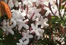 素馨花,木犀科素馨属多年生的攀援灌木植物。攀援灌木,小枝圆柱形,具棱或沟;叶对生,叶轴常具窄翼,小叶片卵形或长卵形;聚伞花序顶生或腋生,花序梗长,苞片线形,花萼无毛,裂片锥状线形,花冠白色,…全部>>