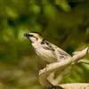 家麻雀:共有13个亚种。是小型鸟类,体长14-16厘米。背栗红色具黑色纵纹,两侧具皮黄色纵纹;颏、喉和上胸黑色,脸颊白色,其余下体白色,翅上具白色带斑。雄鸟与树麻雀的区别在顶冠及尾上覆羽灰色,耳无黑…全部>>