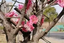 宫粉梅 Rehd.)是蔷薇科、李属植物,梅花品系中真梅系直枝梅类宫粉型,其花复瓣至重瓣,呈或深或浅的红色。落叶乔木,高达10米。树干褐紫色,有纵驳纹,小枝细而无毛,多为绿色。叶广卵形至卵形,…全部>>
