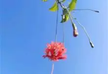 吊灯扶桑 Hook. f.)为锦葵科木槿属的常绿灌木。高达3米;小枝常下垂;叶椭圆形或长圆形,先端尖或短渐尖,基部楔形;花梗细,无毛或具纤毛,中部具节;蒴果长圆柱形;花期全年。因似灯笼高挂,…全部>>