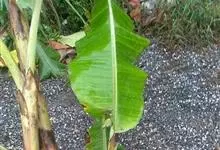 香蕉’),芭蕉科芭蕉属多年生草本植物,植株丛生,有匐匍茎;假茎浓绿有黑色斑点;叶片长圆形,上面为深绿色,无白粉,下面浅绿色;花朵为乳白色或淡紫色;果实呈弯曲的弓状,有棱,果皮为青绿色,…全部>>